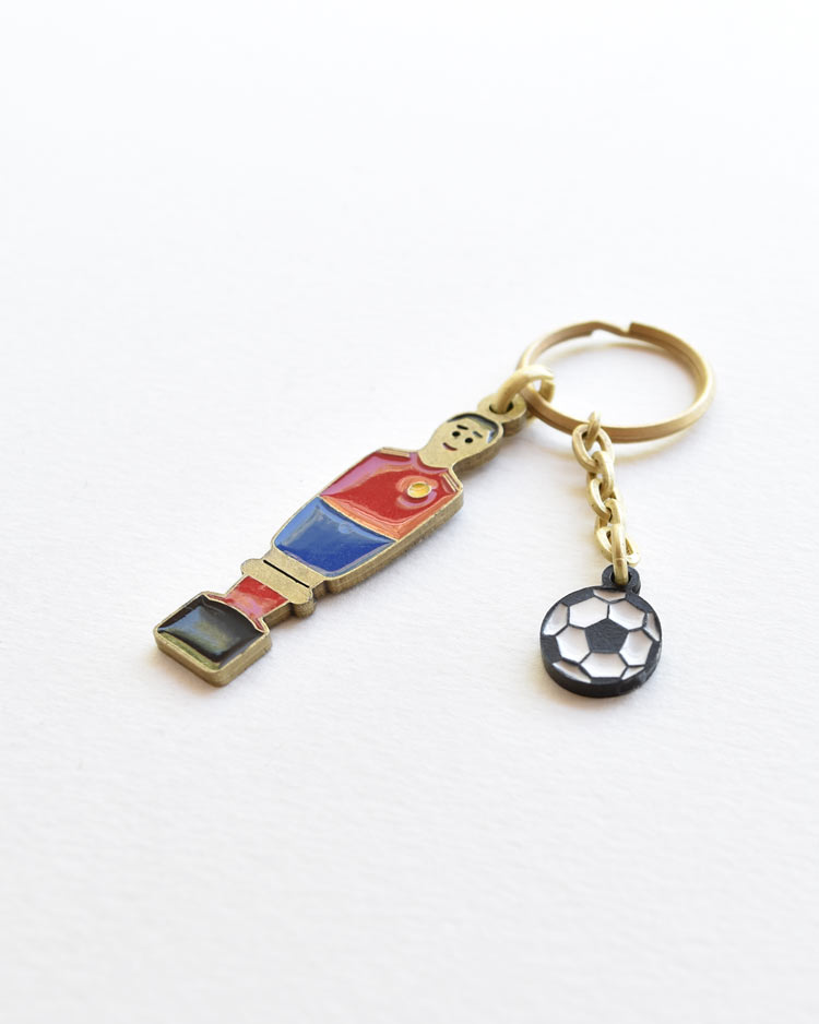 El llavero más original de tu equipo, con la forma de los auténticos jugadores de futbolín. No puede faltar en tu bolsillo fabricado en esmalte en varios colores. Tanto el packaging de los llaveros como las cajas que los contienen (agropaper 100% biodegradable) se hacen en España con certificaciones de sostenibilidad.